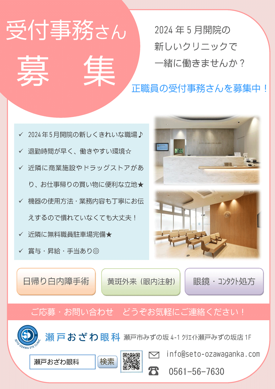 瀬戸おざわ眼科の採用ページをご訪問いただき誠にありがとうございます。