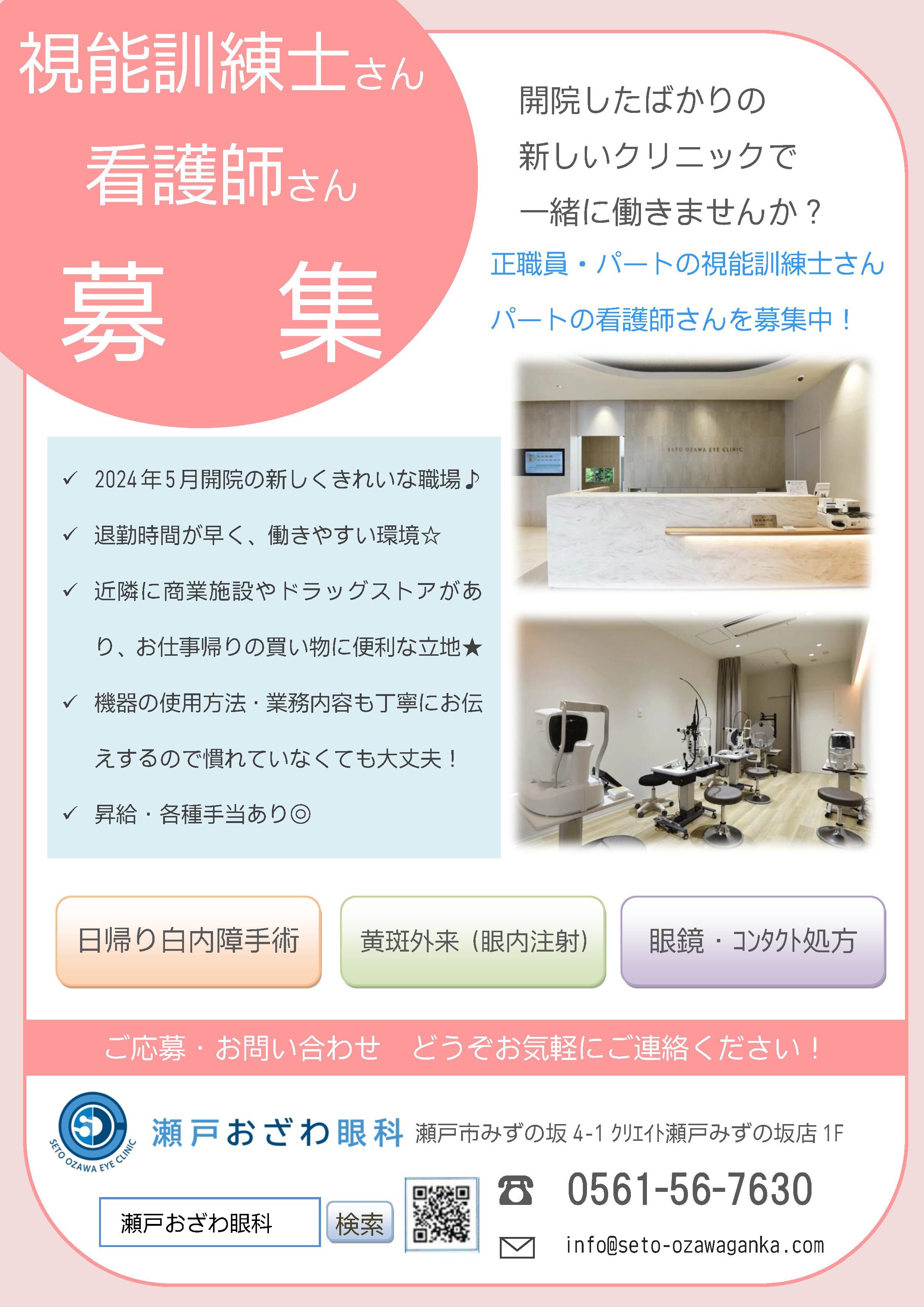 (診療時間内に0561-56-7630にお電話、または採用担当までメールinfo@seto-ozawaganka.com)